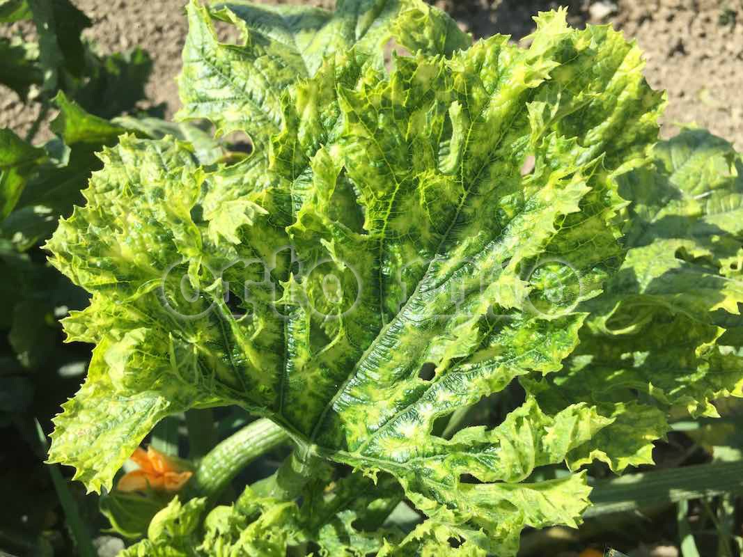 - La strategia più efficace per prevenire i danni dei virus delle cucurbitacee in zucchini e cetrioli è di acquistare le varietà resistenti (controllare le indicazioni sul sito nelle caratteristiche delle singole varietà). Queste varietà offrono una protezione molto più affidabile, rispetto alle comuni zucchine da “semina diretta” e spesso riescono a produrre fino all’autunno. In condizioni di pressione virale particolarmente elevata, anche alcune piante delle varietà resistenti potrebbero venire infettate dai virus. Tra le varietà resistenti, alcune dimostrano una tolleranza superiore alle altre rispetto alle diverse varianti dei virus.